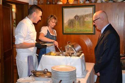 Diesmal wieder mit Buffet und Weihnachtsmusik zur Untermalung.