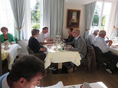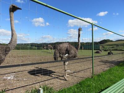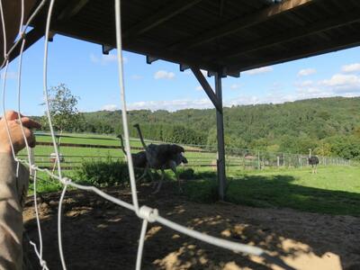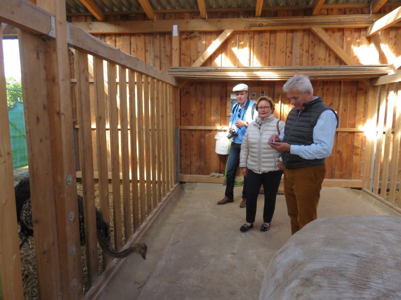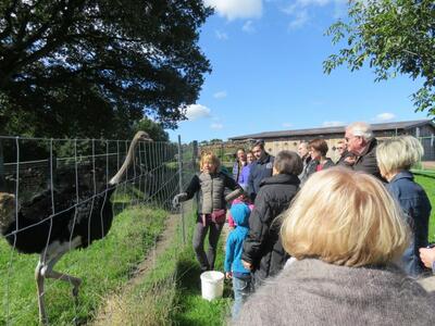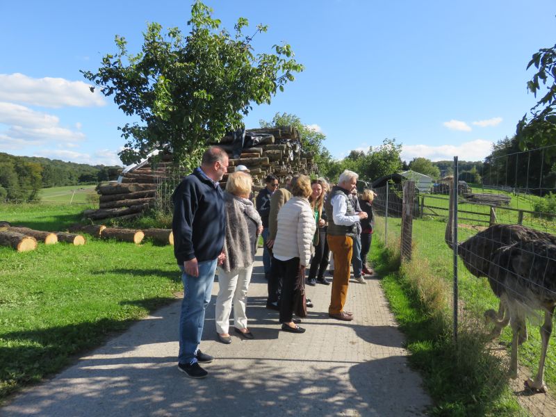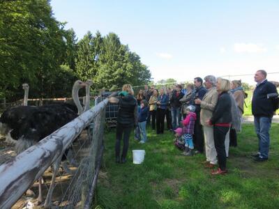 Unsere Fahrt führte uns durch herrliche Straßen des bergischen Landes. Orte wie Remscheid, Witzhelden, Hilgen, Bennert, Dabringhausen und Wermelskirchen lagen auf unserem Weg. Bei herrlichem Sonnenschein kamen wir am Mittag in Neuemühle Emminghausen an. Hier fand eine Führung der „besonderen Art“ statt. Wir besichtigten eine Staußenfarm. Über ein Stunde wurden wir über die Lebensart und die Eigentümlichkeiten dieser Tiere aufgeklärt. Einige von uns nahmen sich zum Schluss noch Erinnerungen in Form von Straußen-Staubwedel oder geschnitzte Straußen-Eier aus dem Straußen-Hofladen mit. Weiter ging es durch die herrliche Landschaft in Richtung Kürten, Wipperfürth durch kleine Orte mit den Namen Ente, Fahlenbrock oder Lamsfuss. Am Nachmittag erreichten wir dann das Landhaus Spatzenhof in Süppelbach. Hier erwartete uns eine „Original Bergische Kaffeetafel“. Diese Bergische Kaffeetafel besteht aus vielerlei Zutaten wie Waffeln mit heißen Kirsche und Sahne, Schwarzbrot, Graubrot, Quark, Marmelade und Kuchen, Wurst und Käse und, und, und…. Es hat herrlich geschmeckt. Nach dieser Stärkung machten wir uns dann, jeder für sich und mit einer gut gelaunten „Katze“, auf den Heimweg.