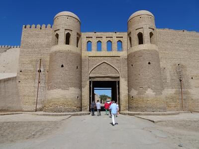 Die Stadt ist über 2.500 Jahre alt, Dschingis Khan war schon hier, Alexander der Große und nun bin ich hier – mein Traum. Die Stadt und Umgebung ist – wie Khiva – sehr grün und fruchtbar, weil man Bewässerungskanäle für die Landwirtschaft angelegt hat. Hier gibt es Obst und Gemüse, alles was das Herz begehrt, und Wein. Die Holländer scheinen noch nicht hier gewesen zu sein, den die Tomaten schmecken tatsächlich wie Tomaten. Sogar Olivenbäume haben wir gesehen, ich dachte immer, die gibt es nur rund ums Mittelmeer.