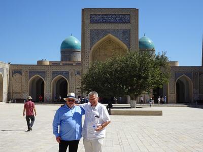 bislang haben wir die 3 bedeutendsten Städte entlang der Seidenstraße erfahren + erlebt: Khiva, die beschauliche, Buchara, die Perle und Samarkand, das Juwel, welch eine gigantische Steigerung von Eindrücken, grandios, für mich hat sich die Tour bis hierher schon gelohnt, wir fotografieren wie die Japaner, ich habe heute einen shop gefunden, in dem ich 2 CDs mit Fotos aller Sehenswürdigkeiten von Usbekistan gekauft habe, so gut kann keiner von uns fotografieren, ausserdem mit gesprochenen Erläuterungen in verschiedenen Sprachen, werden wir mal einen Diaabend zu Hause veranstalten.