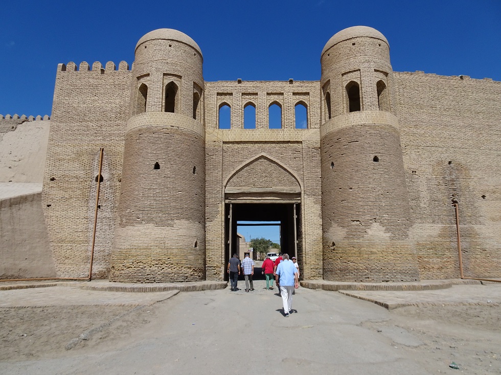 In Khiva hatten wir nur einen Nachmittag Zeit für eine geführte Stadtbesichtigung, die Reiseführerin lügt offensichtlich beim Beten. Sie wollte uns weißmachen, dass der Aralsee aufgrund tektonischer Verschiebungen „versandet“ ist, einfach weg, meinen Einwand, dass die Russen seinerzeit dem Aralsee das Wasser buchstäblich abgegraben haben, wies sie entrüstet zurück. Beim Besuch einer Moschee offener Bauart, dass heisst ohne Kuppel mit teilweiseoffenem Dach, von diesem Typ gibt es weltweit nur noch 4 Stück, eine in Cordoba, die mehr als 1.000 Jahre alt sind, waren einige Säulen aus Baumwollstämmen, früher gab es Baumwollbäume, die 1 Dutzend Meter und höher waren, aber eben wegen dieser Höhe wenig Wolle trugen und ausserdem schlecht zu pflücken waren. Deswegen heisst es Baumwolle und nicht Strauchwolle, wahr oder nicht wahr? Vor vielen Hundert Jahren wurden Geldscheine aus Seide hergestellt, weil Papier knapp + teuer war. Mit den Jahren waren die Seidenscheine so schmutzig und unleserlich, dass sie gewaschen werden mussten, aus schmutzigem wurde sauberes Geld, funktioniert auch heute noch, gell.