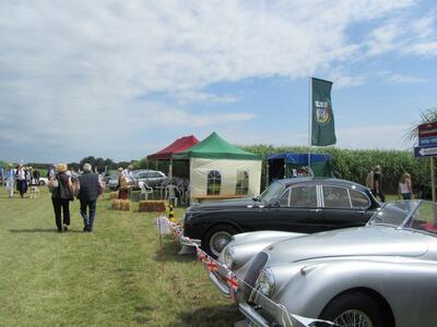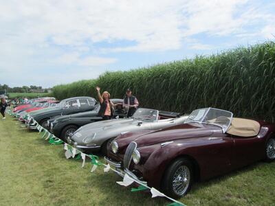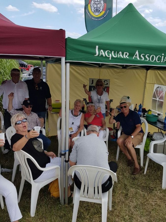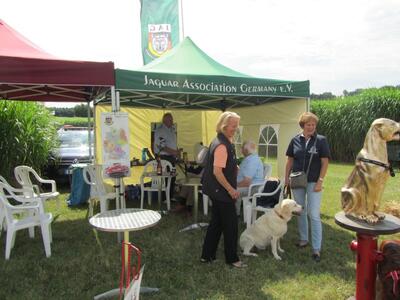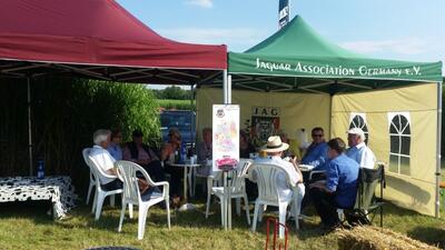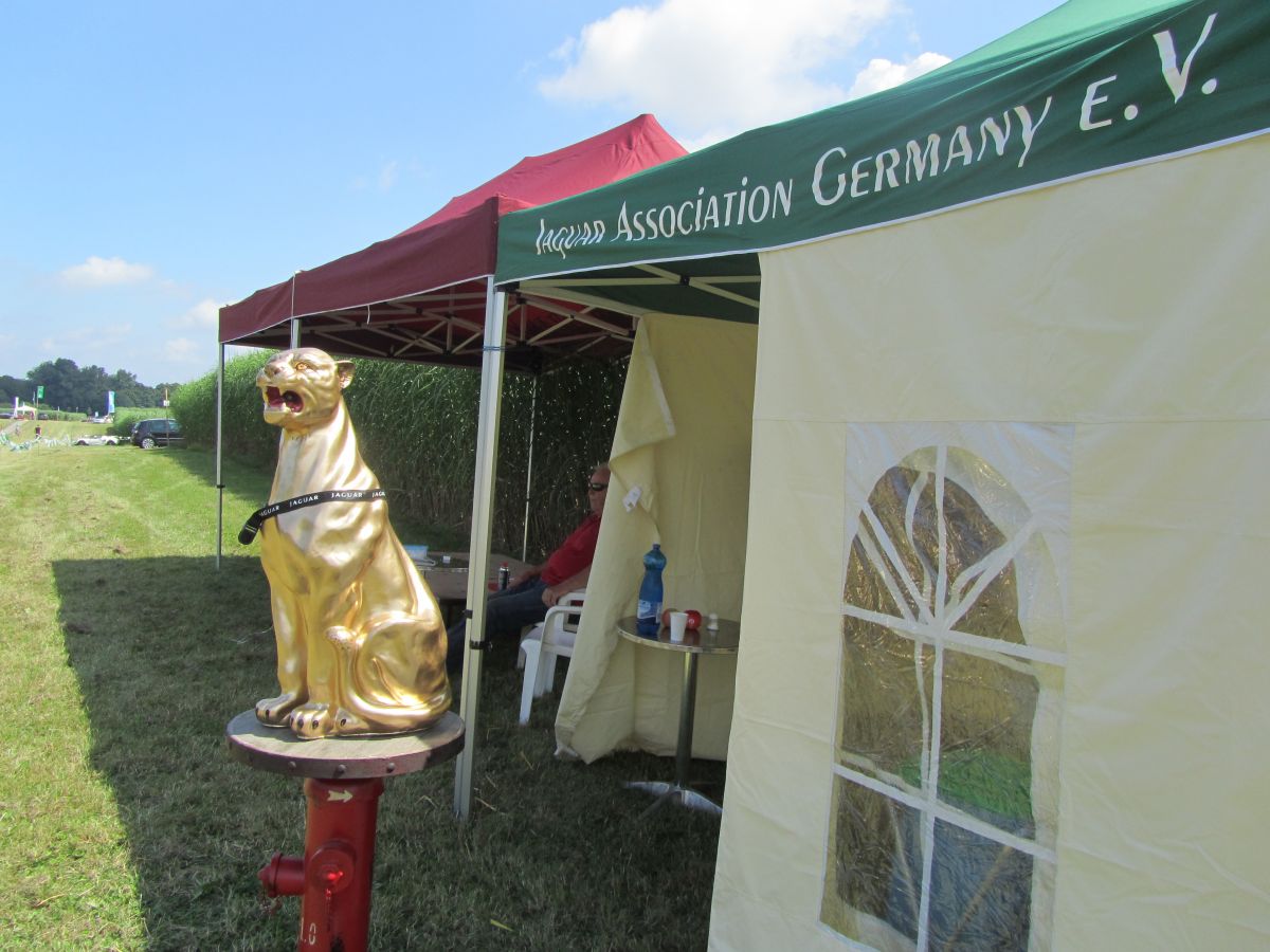 Die Sektion Rhein-Ruhr war mit zwei Zelten als Anlaufpunkt für alle Mitglieder auf dem Dycker Feld vor Ort. Weithin war wieder die große Jaguarfahne zu sehen.