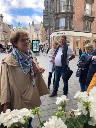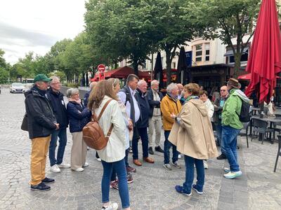 Das Programm der startete gegen 16:00 Uhr mit einer Führung in zwei Gruppen, jeweils in Französisch und in Deutsch. Wir besichtigten das historischen Zentrums von Reims, wobei unsere Reiseführerin besonderen Wert auf die verschiedenen Häuserfassaden legte.