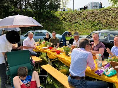 Am 1. Mai waren die Oldtimer zu Besuch und werden mit Unterstützung der MSF Theeltal dem Publikum vorgestellt. Liebevoll gepflegte Fahrzeuge, bei denen die ein oder andere Rarität entdeckt werden kann und den Betrachter vielleicht auch in seine Jugendzeit zurückversetzt, als die Fahrzeuge über unsere Straßen fuhren. Die JAG Saar-Pfalz, als teilnehmerstärkster Club mit 6 Oldtimern vertreten, präsentierte sich zum 8. Mal in Bexbach. Traditionell war unser Picknick reich an kulinarischen Genüssen von Mitgliedern gestaltet.