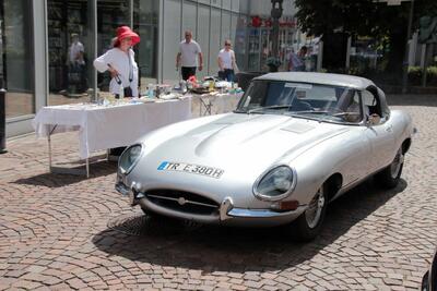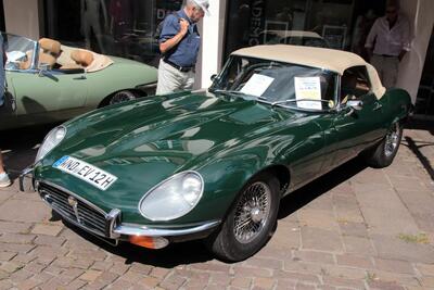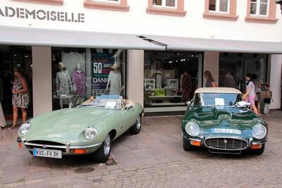 Bei sehr schönem Wetter und guter Stimmung trafen wir uns morgens in der Sankt Ingberter Fussgängerzone. Nach dem gemeinsamen Frühstück im "Soho" wartete auf uns ein besucherreicher Tag in der Innenstadt von Sankt Ingbert, die mit über 100 Oldtimern geschmückt war. Mit drei sehr schönen Jaguar E-Type präsentierten wir vor der Boutique Mademoiselle die Sektion JAG Saar-Pfalz standesgemäß.