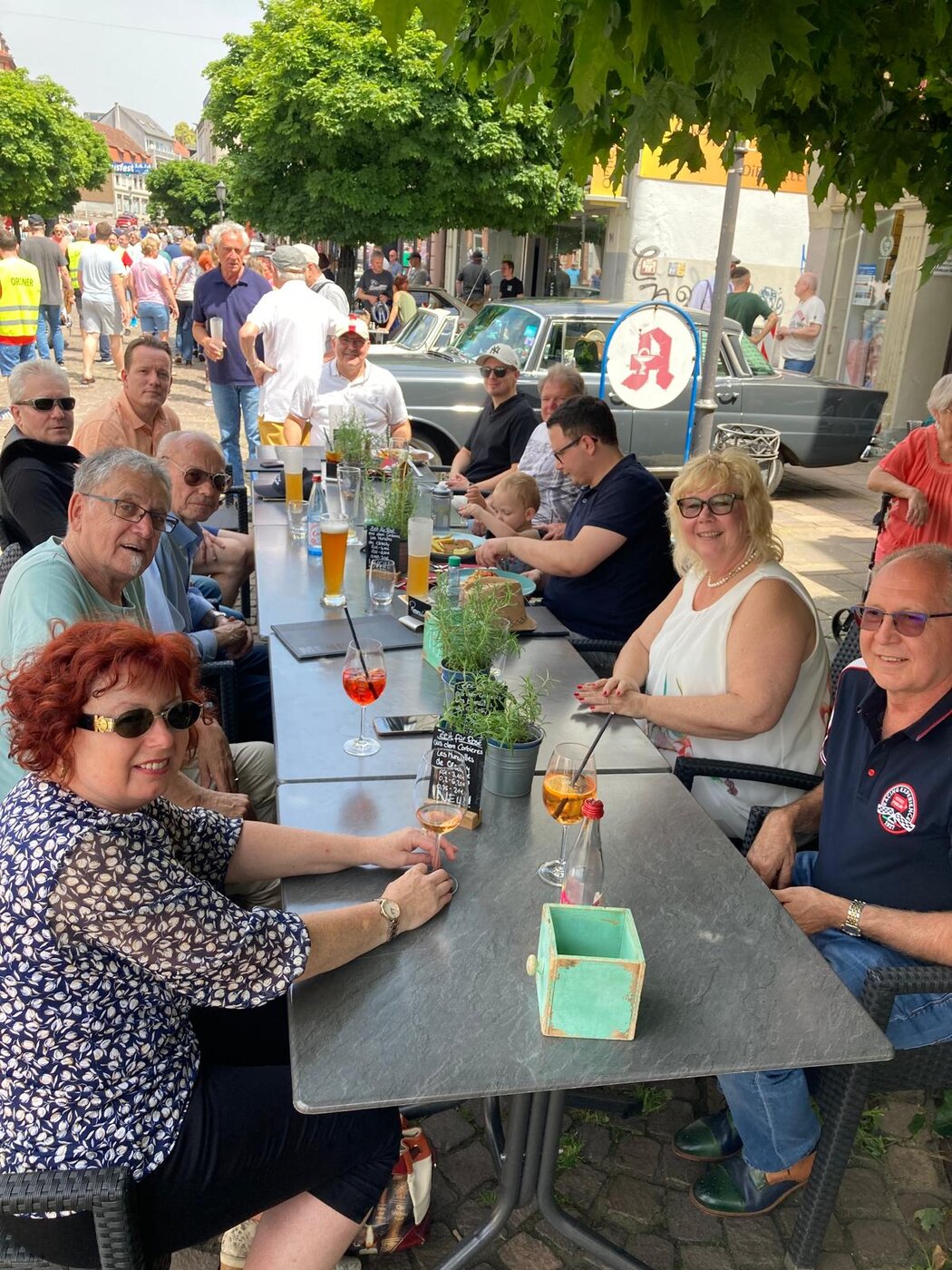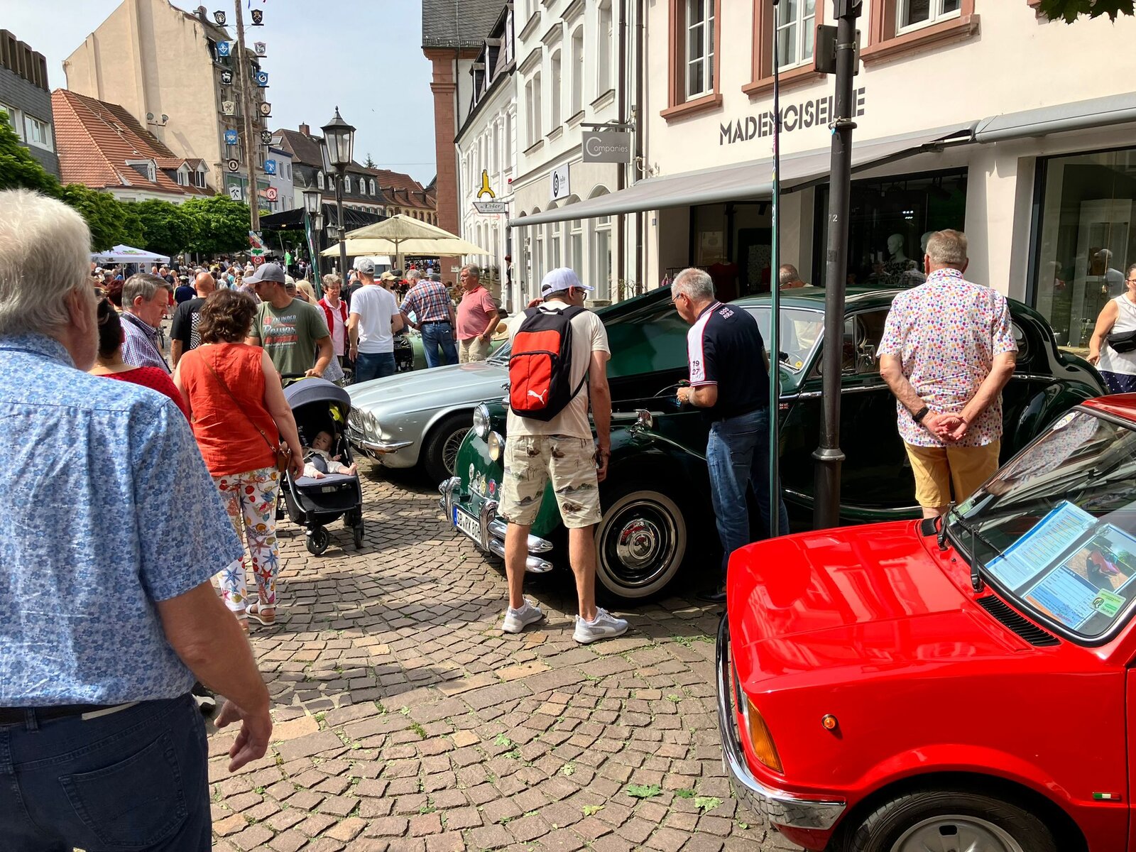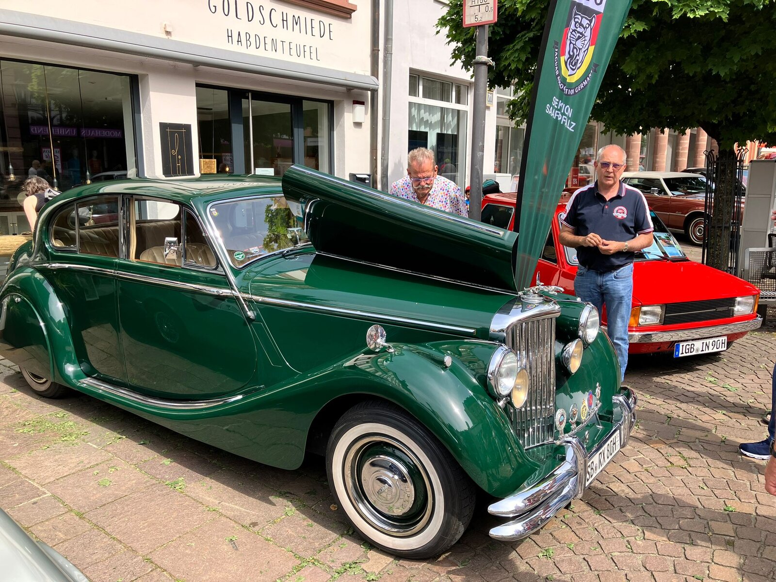 Bei sehr schönem Wetter und guter Stimmung trafen wir uns morgens in der Sankt Ingberter Fussgängerzone. Nach dem gemeinsamen Frühstück im "Soho" wartete auf uns ein besucherreicher Tag in der Innenstadt von Sankt Ingbert, die mit über 100 Oldtimern geschmückt war. Mit sehr schönen Jaguar Modellen präsentierten wir vor der Boutique Mademoiselle die Sektion JAG Saar-Pfalz standesgemäß und die Resonanz war sehr gut.