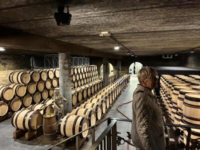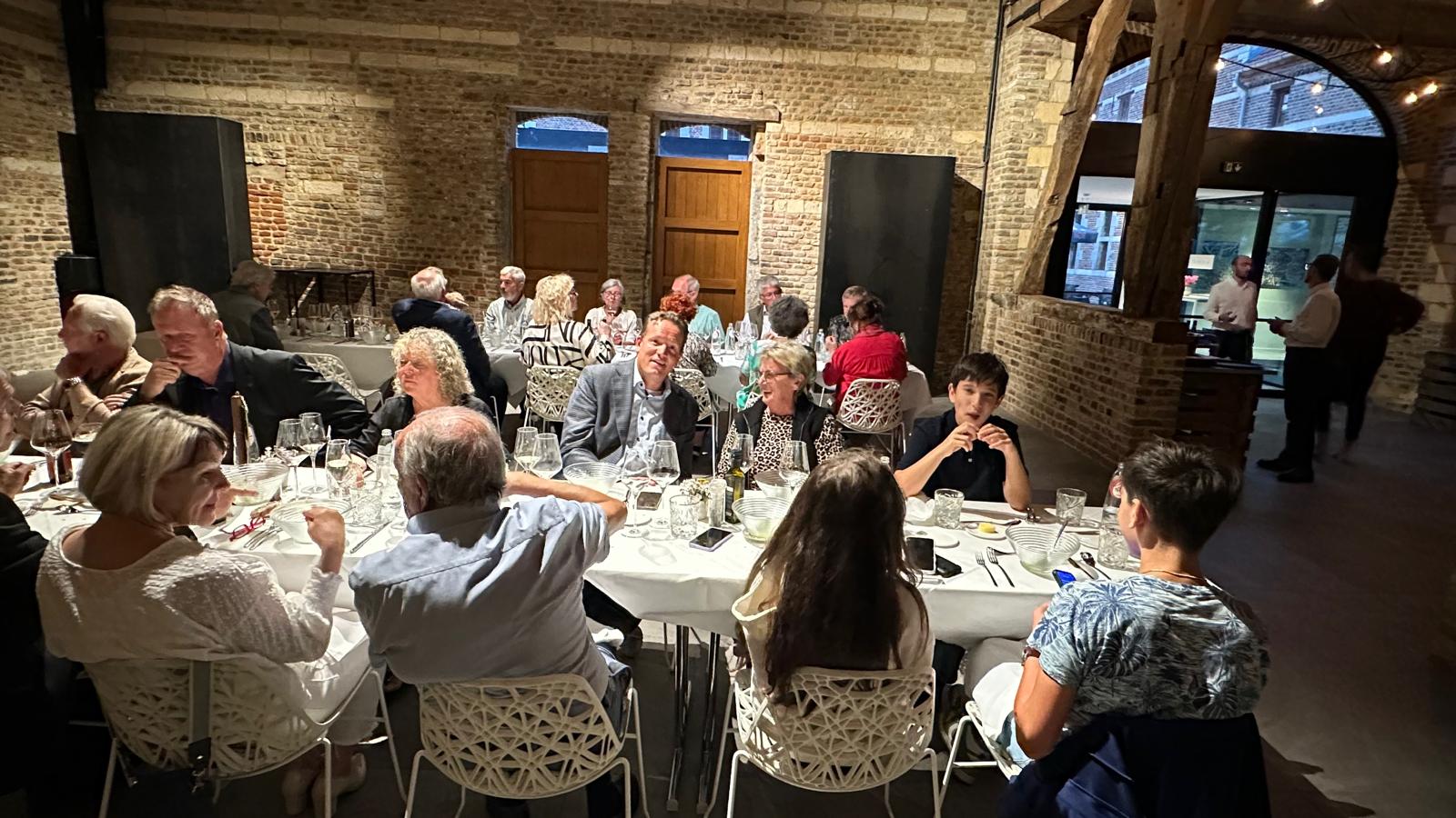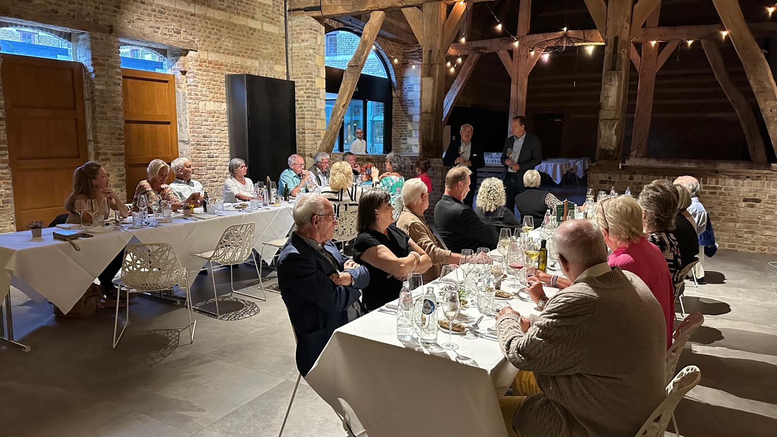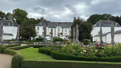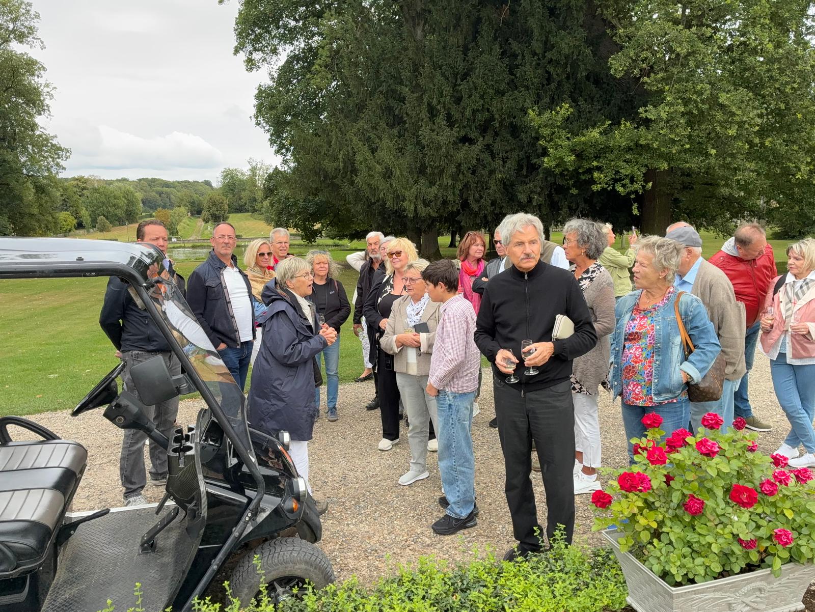 Weiter ging es auf landschaftlich interessanten Straßen über die Region Hohe Venn und nahe an der niederländischen Grenze nach Riemst auf das Weingut „Wijnkasteel Genoels-Elderen“. In der beeindruckenden Kulisse des Schlosses und der Umgebung konnten wir in einer deutschsprachigen Besichtigung und Weinverkostung Belgiens größtes und einziges Weinschloss kennenlernen. Die Wurzeln des Anwesens reichen bis in die Römerzeit zurück, wie Fundamente einer römischen Villa belegen.1990 erwarb die Familie Van Rennes das Anwesen und begann im folgenden Jahr wieder mit dem Anbau von Reben.