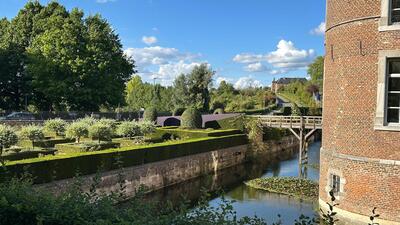 Nach kurzer Fahrt gelangen wir zu unserem nächsten Highlight, die „Landkommende Alden Biesen“. In einer deutschsprachigen Führung durch die Burganlage und die Gärten konnten wir die eindrucksvolle Geschichte des Ortes erleben. Die Ursprünge von Alden Biesen gehen auf eine Kapelle zurück, die im Jahr 1220 dem Deutschen Orden überlassen wurde.