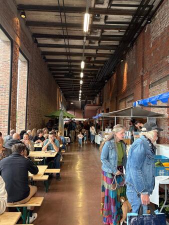 Der zweite Tag in der Region Limburg begann nach dem Frühstück mit einer kurzen Tour nach Genk, wo auf uns die C-mine, ein kreativer Hotspot und touristisches Highlight auf dem Gelände des ehemaligen Steinkohlebergwerks Winterslag warteten. Die Attraktion „C-mine Expedition“ mit teilweise deutscher Besichtigung zeigte uns einen interaktiver Erlebnisparcours, der uns auf eine abenteuerliche Reise durch die Geschichte des Bergwerks mitnahm. Wir konnten durch unterirdische Gänge gehen und den Förderturm besteigen, von dem aus ein Panoramablick auf die Region beeindruckte. Das integrierte Kulturzentrum ist ein Treffpunkt für Kreativität und Innovation. Hier finden regelmäßig kulturelle Veranstaltungen, Konzerte, Theaterstücke, Tanzaufführungen und Ausstellungen statt.