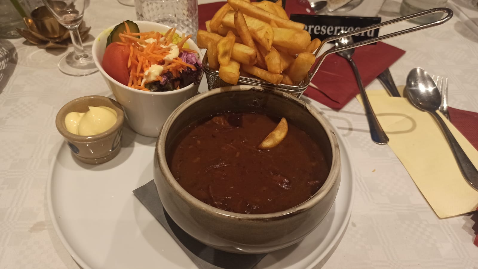 Nach dem Aufstellen unserer tollen Jaguare im Schlosshof von unserem stilvollen Hotel „Château de Looz“ ließen wir den erlebnisreichen Tag bei einem traditionellen 3-Gänge-Menü im Hotelrestaurant ausklingen.