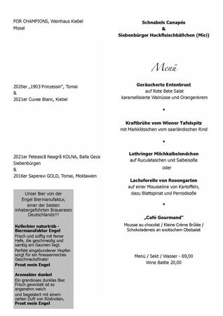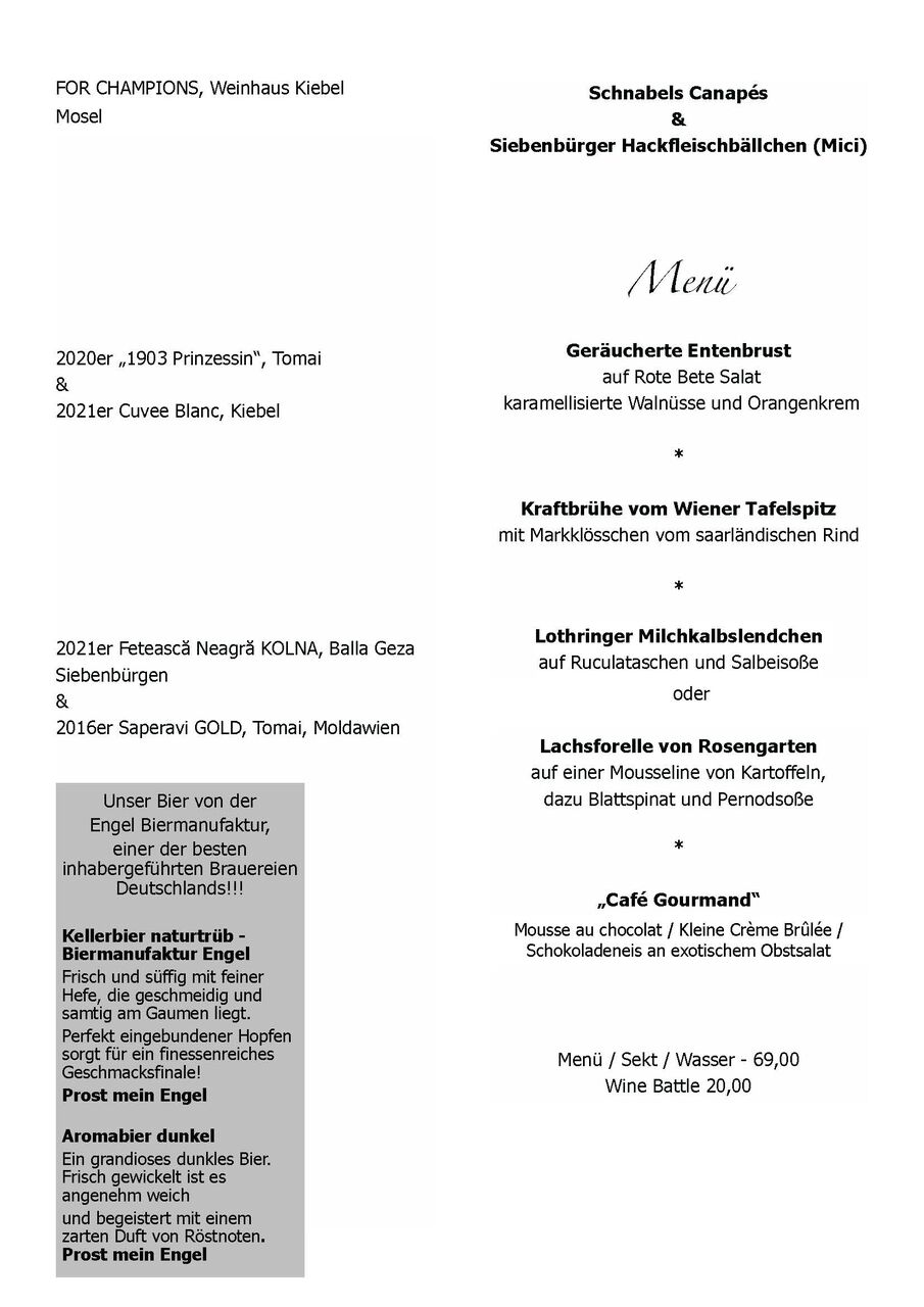 Wir trafen uns gegen 18:00 Uhr zum Sektempfang mit Canapés im "Schnabels Restaurant".