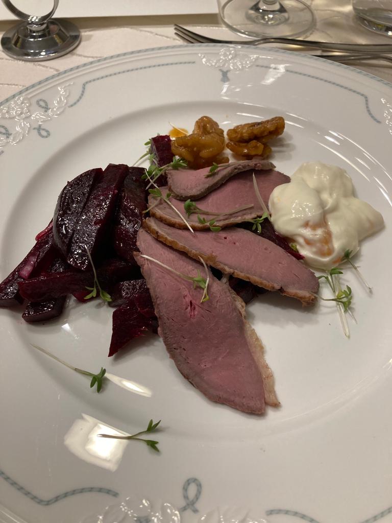 Danach verwöhnte uns Jürgen Schnabel mit einem 4-Gänge Gourmet-Menu und nahm uns auf ein "Wein-Battle" mit, bei dem für jeden Gang 2 Weine gegeneinander "angetreten" sind. Dabei haben wir nicht nur überraschende Weine kennengelernt, sondern auch sehr unterhaltsam das Weinportfolio von "Schnabels feine Weine" entdeckt .