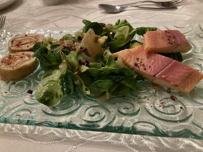Wir trafen uns gegen 18:00 Uhr zum Sektempfang mit Canapés im "Schnabels Restaurant".