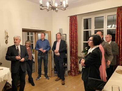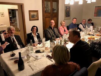 Danach verwöhnte uns Jürgen Schnabel mit einem 4-Gänge Gourmet-Menu und nahm uns auf eine "Wein-Reise" durch Moldavien mit. Dabei wurden wir nicht nur überraschende Weine kennenlernen, sondern auch sehr unterhaltsam das Flair Moldaviens kennengelernt.