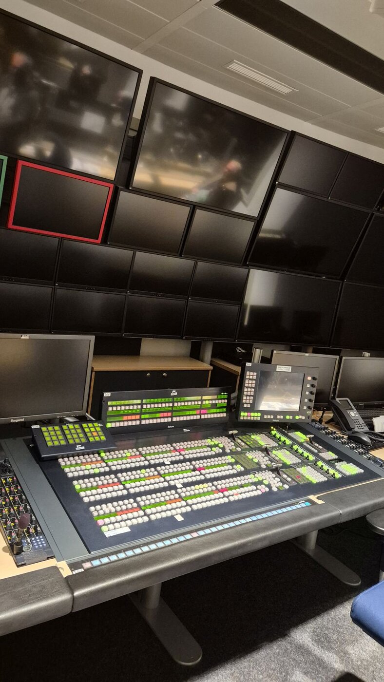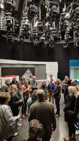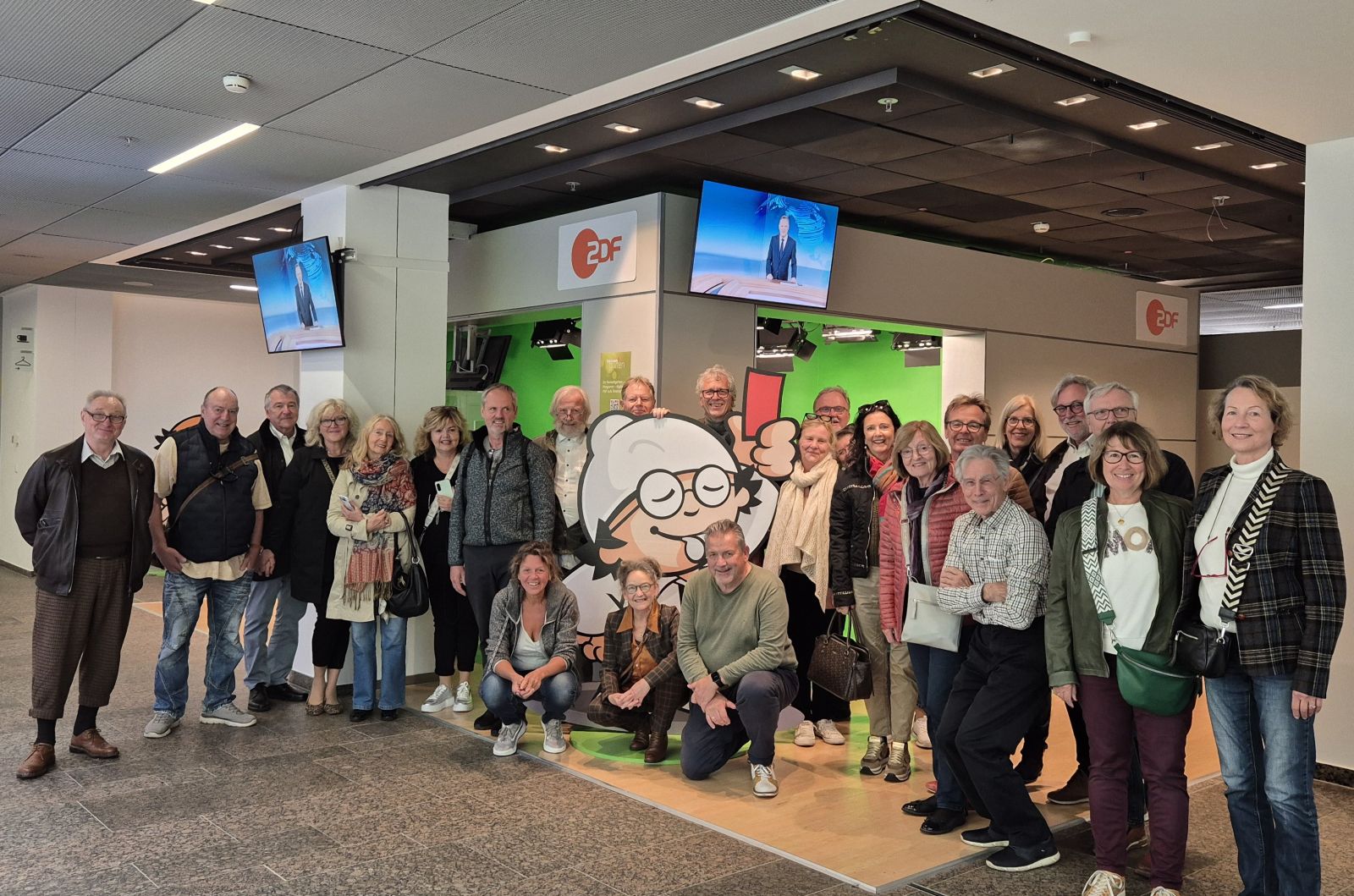 Während der Führung kollidierten wir mit einer anderen Besuchergruppe des Moderators Jörg Pilawa, der dann für kurze Zeit Teil unserer Gruppe war, bevor er von seiner Assistentin wieder gefunden und eingefangen wurde. Im Außenbereich konnten wir für ein paar Minuten den Proben für den sonntäglichen „Fernsehgarten“ folgen und anschließend in den Studios die aufwendige Technik für Ton und Licht kennenlernen. Bei den riesigen Schalt- und Stellpulten hatten wir den Eindruck, dass man eher einen Jumbojet fliegen könne, als sich hier zurecht zu finden.