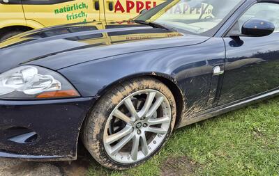 Auf den letzten paar hundert Metern vor der Mittagsrast bei Appel Happel, einem Bio Bauernhof mit Restaurant bei Mainz, stellte sich dann doch die Frage, warum man am Vortag den Jaguar noch frisch gewaschen hatte - davon war jetzt nicht mehr viel übrig.