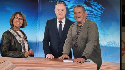Nur 500m weiter folgte am Nachmittag die Besichtigung des ZDF. Während des Wartens im Foyer hatten wir alle unseren Spaß beim Ausprobieren der „Green Screen Technik“. Das ZDF nutzt diese Technik in seinen virtuellen Studios, um mit Hilfe von 3D-Grafiken Hintergründe zu erzeugen und dem Zuschauer eine echte Kulisse vorzutäuschen. Somit wurden Einzelne von uns scheinbar ein Teil der Nachrichten.
