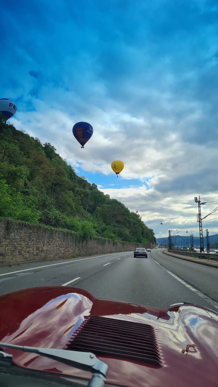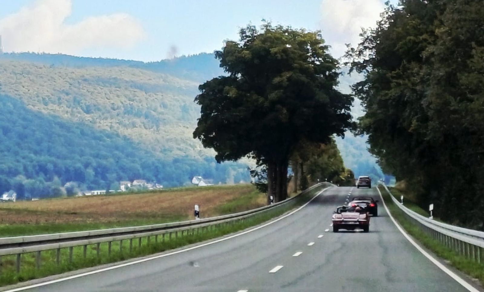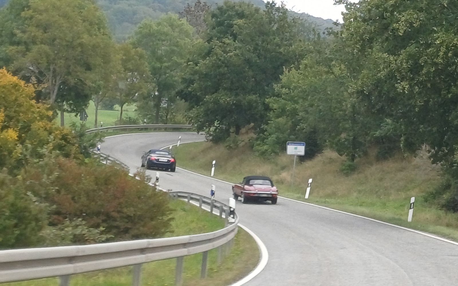 Getroffen haben sich 13 Fahrzeuge aus den Sektionen Stuttgart, Freiburg, Frankfurt und Rhein/Ruhr in einer Bäckerei in Walldorf bei Heidelberg, um nach einem stärkenden Frühstück zu starten, da ja einige schon eine längere Anreise hinter sich gebracht hatten. Die Region Mannheim/Ludwigshafen wurde dann zügig auf der Autobahn umrundet, um anschließend ab Worms durch das hügelige Weinanbaugebiet Rheinhessen mit seinen netten kleinen und zum Teil extrem verwinkelten Orten zu cruisen
