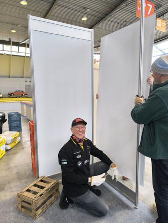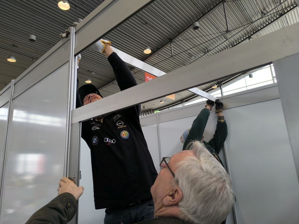 Ein echter Glücksgriff war der große Anhänger, den die JAG auf Franks Vermittlung hin angeschafft hatte. Endlich fand das komplette Messe-Equipment beim Antransport bequem Platz. Am Mittwoch vor Messebeginn verwandelten engagierte Helfer den Aufbau in ein fröhliches Tetris-Spiel: Mit Teamgeist, Geschick und guter Laune setzten sie die vielen Einzelteile zu einem einladenden, professionellen Stand zusammen.