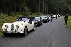 In diesem Sommer trafen sich die Jaguaristen zunächst auf dem Land zu einem köstlichen Brunch in der westfälischen Restauration „Tante Malchen“ im Lippetal. Dort versammelten sich bei bestem Wetter über 20 blankpolierte Jaguare mit ca. 30 Katzenliebhabern. Nach erstem lukullischen Genuss starteten die Teilnehmer nach Roadbook zur ersten Etappe einer prächtigen Ausfahrt durchs Lippetal über Herzfeld, Liesborn, Wadersloh, Stromberg nach St. Viet zum Verstärkeramt; ein historisches Kleinod aus dem zweiten Weltkrieg. Unter einem normal aussehenden westf. Bauernhaus versteckt ging es in die Tiefe der Katakomben, wo in zahlreichen Bunkerräumen das Verstärkeramt eine wichtige, nachrichtendienstliche Funktion für die in Gütersloh gelegene Nachrichtenkaserne und den Flugplatz erfüllte. Die dort stationierten Nachtjäger Messerschmitt Bf 110 waren während der Reichsverteidigung auf ein gut funktionierendes Nachrichtenwesen angewiesen. Kurios: die Tarnung des mit unterirdischer Technik vollgepropften Amtes war so hervorragend, dass die einrückenden alliierten Truppen vor dem Gebäude Camps aufbauten, ohne die Station zu entdecken. Ergänzt ist die Ausstellung durch eine gewaltige Sammlung funktechnischer Geräte der Vergangenheit.