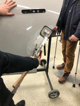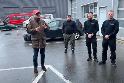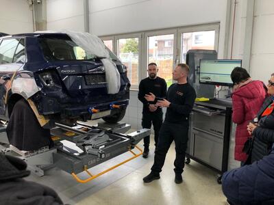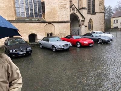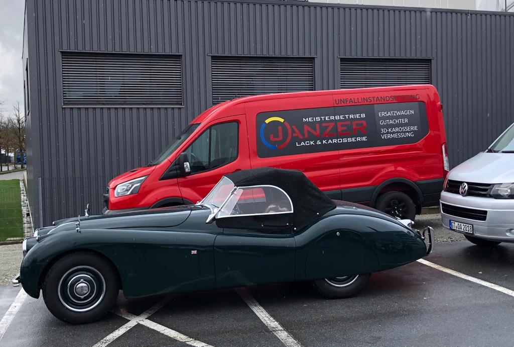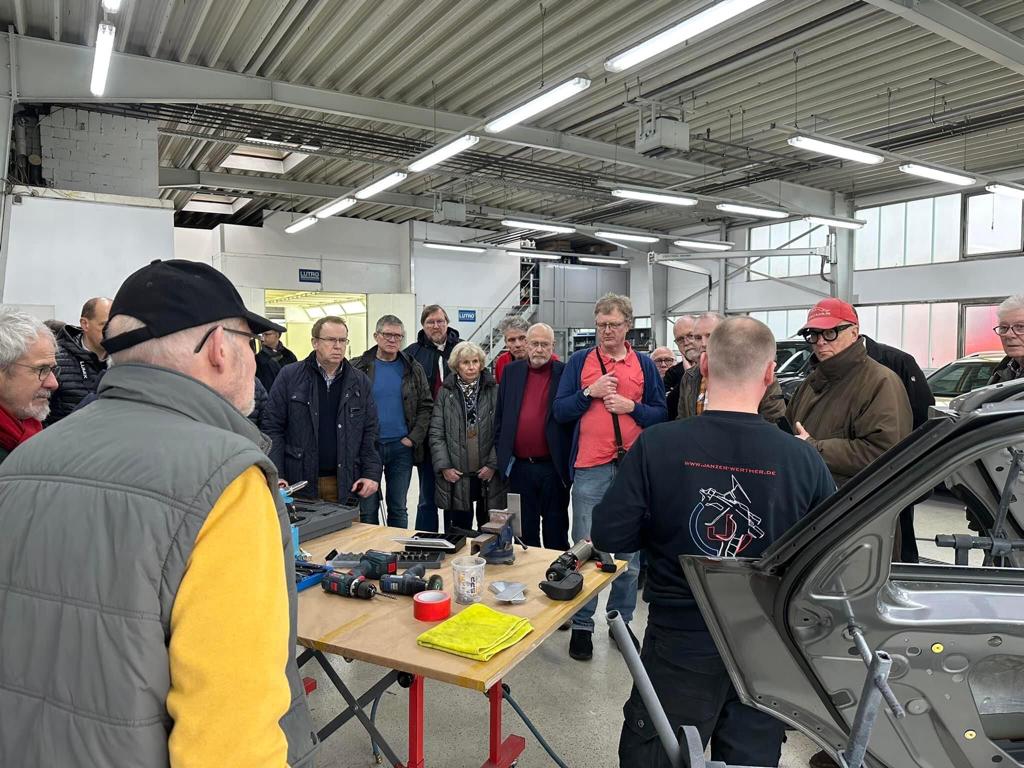 Danach ging die Fahrt weiter Richtung Bielefeld, um in Werther der Werkstatt Janzer einen Besuch abzustatten. Hier konnten die Mitglieder erleben, wie Aluminium heutzutage nicht mehr genietet, sondern verklebt wird. Das ist nicht nur interessant für die Lightweights der frühen Jahren, sondern auch für die neuen Aluminium-Jaguare.